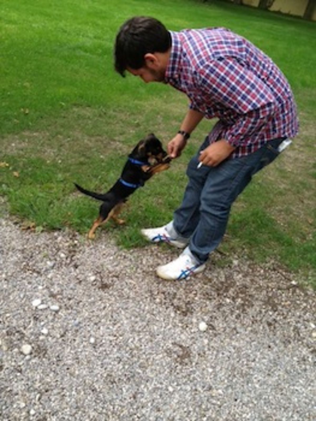 freut mich von Ihnen zu hören. Uns beiden geht es bestens. Luca freut sich jeden Morgen mehr als ich, wenn das Tor zur Firma aufgeht ;).Die Kolleginnen als auch die Kollegen haben ihn bereits feste ins Herz geschlossen. Er gehört schon fest zum Schloss dazu J. Ganz toll findest er es sich im Garten irgendwelchen Häufchen zu wälzen, die anschließende Dusche jedoch nicht, aber was sein muss. Schwimmen hat er mittlerweile auch gelernt, macht ihm eigentlich auch viel Spaß aber er bleibt doch lieber am Rand wo er stehen kann. Habe Ihnen dazu ein paar Fotos angehängt.