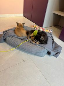 Mit anderen Hunden versteht sich Cookie wunderbar, egal ob Rüden oder Hündinnen. Er orientiert sich gerne an seinen Artgenossen, was ihm Sicherheit gibt. Auch das Alleinebleiben für kurze Zeit klappt schon gut, solange ein anderer Hund bei ihm ist. Ganz allein möchte er aber (noch) nicht bleiben. An seiner Stubenreinheit wird aktuell noch gearbeitet – mit Geduld und Routine wird er das sicher bald meistern.