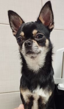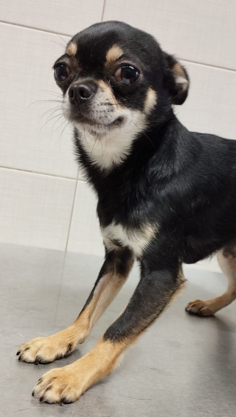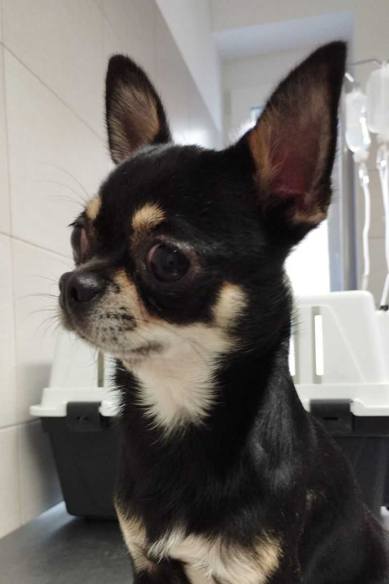 Der kleine Chihuahuarüde Popeye wurde, zusammen mit mehreren Artgenossen, aus der Zucht entlassen und fand zum Glück gleich einen Platz auf einem Tierschutzhof in Ungarn.