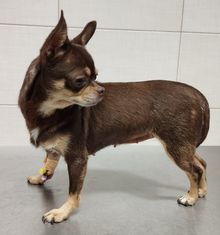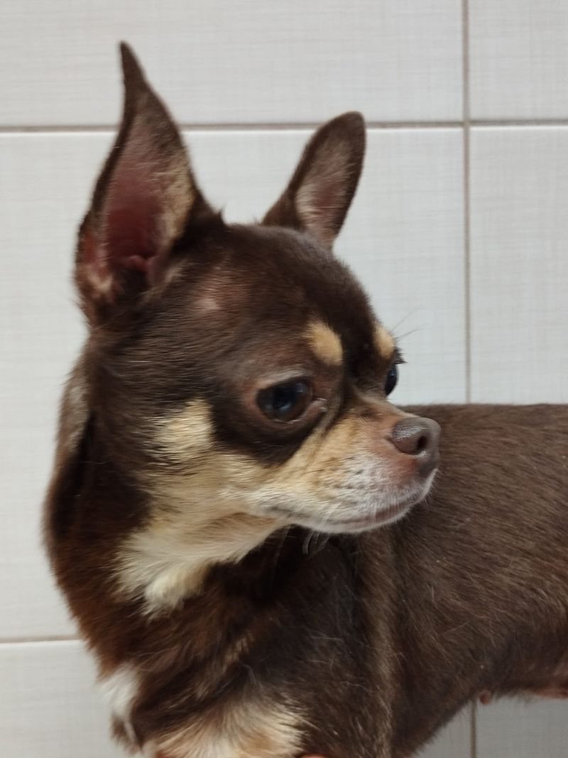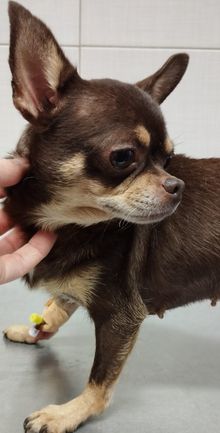 Die hübsche Chihuahuahündin Ibis wurde, zusammen mit mehreren Artgenossen, aus der Zucht entlassen und fand zum Glück gleich einen Platz auf einem Tierschutzhof in Ungarn.